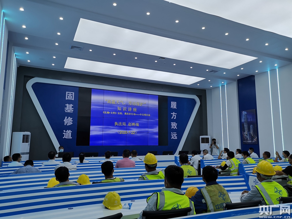 橫瀝項目的工人在安全體驗館進行安全知識培訓。(央廣網(wǎng)發(fā) 通訊員供圖)
