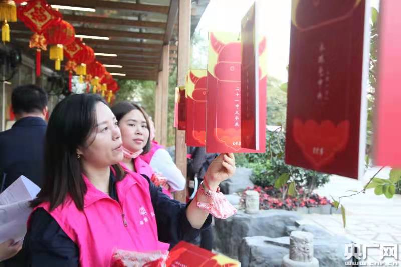 活動現(xiàn)場,猜燈謎、剪窗花、寫對聯(lián)、插花、套圈贏獎品等新春游園活動,讓家政員體味到了濃濃年味。此外,為慰藉家政人員的思鄉(xiāng)之情,特別設(shè)置了明信片免費(fèi)郵寄到家專區(qū),鼓勵家政人員親筆寫下充滿溫度的文字,把愛寄回家。