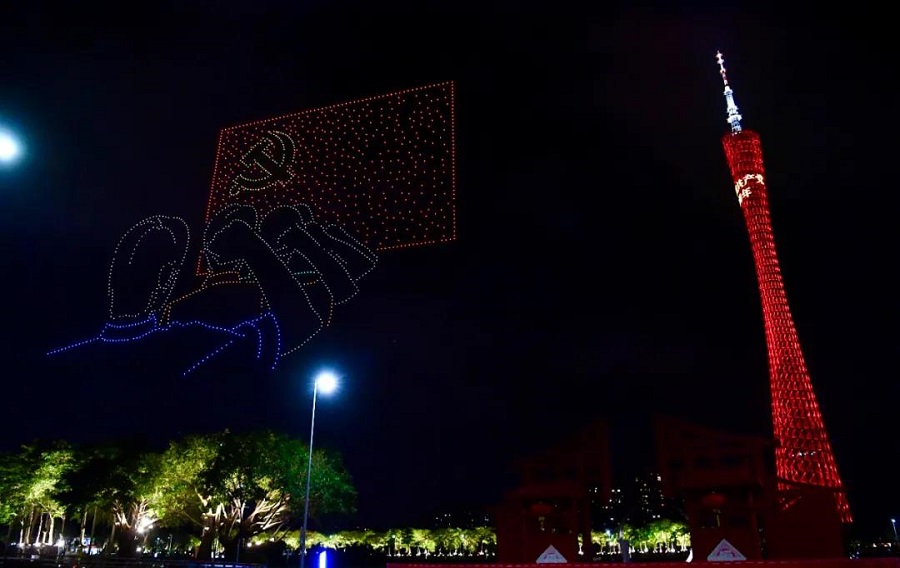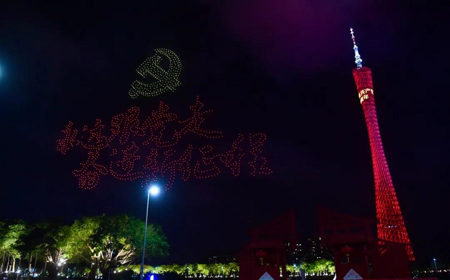 1520架無(wú)人機(jī)組成中國(guó)共產(chǎn)黨的黨旗,