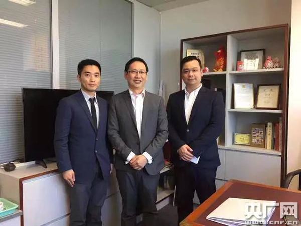 香港特區(qū)立法會議員柯創(chuàng)盛(中)接受央廣記者羅武(左)與周偉琪(右)采訪