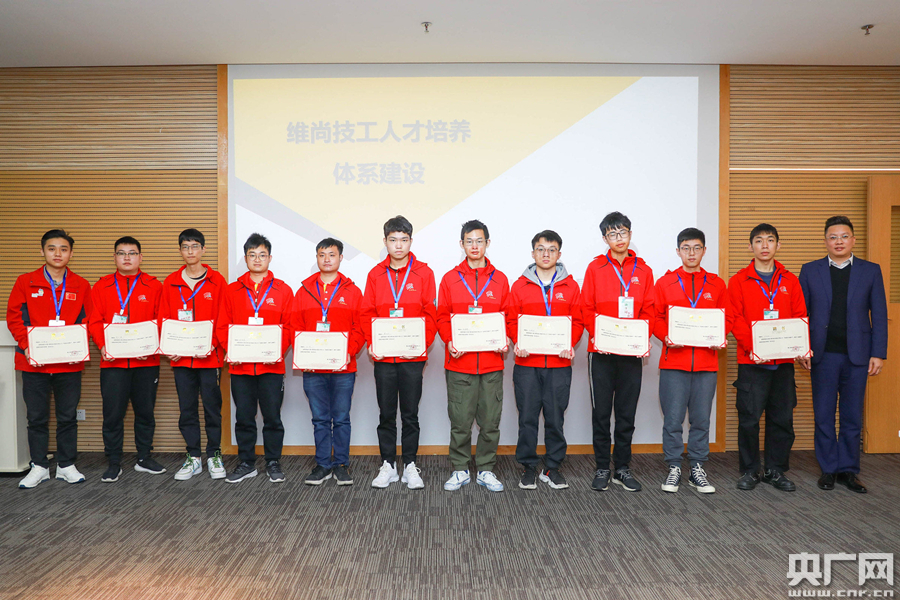 維尚向到訪的年輕工匠們頒發(fā)“高級技術顧問”聘書(央廣網發(fā))