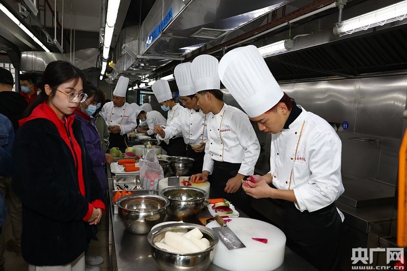 國賽選手在順德廚師學(xué)院課堂了解雕花技藝。(央廣網(wǎng)發(fā))