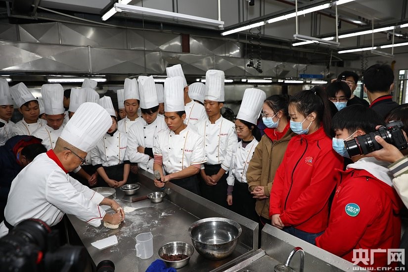 央廣網(wǎng)佛山12月17日消息(記者陳越)揉面團(tuán)、片魚片、雕花……近日,“大國工匠灣區(qū)行”走進(jìn)順德職業(yè)廚師學(xué)院,國賽選手們?cè)趯W(xué)院課堂體驗(yàn)后廚工作,與廚師學(xué)院的教師學(xué)員們進(jìn)行學(xué)習(xí)交流。目前,順德廚師學(xué)院已聘請(qǐng)黎永泰、羅福南等20位中國烹飪大師擔(dān)任順德廚師學(xué)院的兼職教授,讓順德名廚投身教學(xué)事業(yè),培養(yǎng)粵菜廚師后備人才。