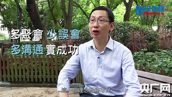 柯:其實(shí)那個(gè)時(shí)候就是一下子衝動(dòng)想試一試,因?yàn)槟菍檬窍愀刍貧w之後第一屆區(qū)議會(huì)選舉,社會(huì)上也有很多不同的聲音,對內(nèi)地也沒有深入瞭解,所以也會(huì)有不一樣的想法。我那個(gè)時(shí)候就鼓起勇氣,壯著膽子去選舉。當(dāng)時(shí)我是以2596票贏了民主黨的一位比我年輕、比我更加專業(yè)的年輕人,他只獲得六百票左右。那種得到市民的認(rèn)同的滿足感,對於我從政來說是一個(gè)很大的鼓舞。