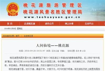 重慶酉陽和湖南桃源分別在旅游官網(wǎng)上宣稱自己才是正宗陶淵明筆下《桃花源記》里描述的桃花源。兩地旅游官網(wǎng)截圖