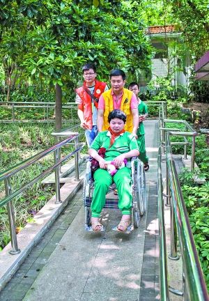 殘障孩子在志愿者的陪伴下游覽愛心公園。廣報記者莊小龍攝