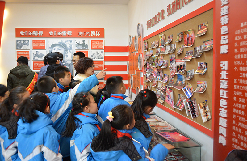 學(xué)生參觀陳文學(xué)紅色志愿服務(wù)工作室。圖片來源:先鋒道街道辦事處