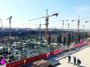 探訪當(dāng)日,北京晨報(bào)記者走過(guò)一條長(zhǎng)長(zhǎng)的甬道來(lái)到臨邊防護(hù)圍欄前,60萬(wàn)平方米的超大體量施工現(xiàn)場(chǎng)著實(shí)令人震撼。13臺(tái)塔吊在施工現(xiàn)場(chǎng)不同部位不停揮動(dòng)著長(zhǎng)臂,完成著一次次超大跨度的運(yùn)輸?shù)跹b。綠色的運(yùn)輸卡車(chē)正在川流不息地進(jìn)行著土方回填,一片井井有條的繁忙景象。據(jù)現(xiàn)場(chǎng)工作人員介紹,目前,地下結(jié)構(gòu)施工已臨近尾聲,預(yù)計(jì)5月底前全部完成。