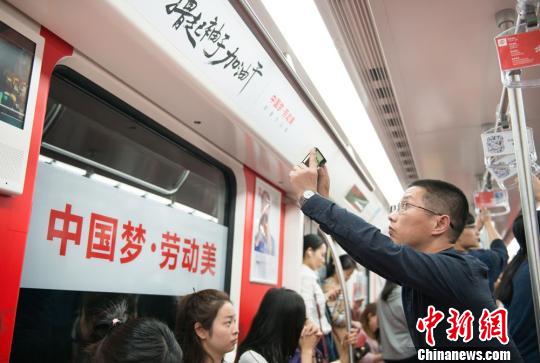5月1日,由湖南省總工會及省文聯(lián)共同主辦,長沙市文明辦、湖南省攝影家協(xié)會承辦的“擼起袖子加油干——‘中國夢?勞動美’”中國首趟全國勞模主題宣傳專列從長沙正式首發(fā)駛出。主辦方以地鐵為平臺,全方位宣傳和展示中國各行各業(yè)中涌現(xiàn)出來的勞動模范代表。