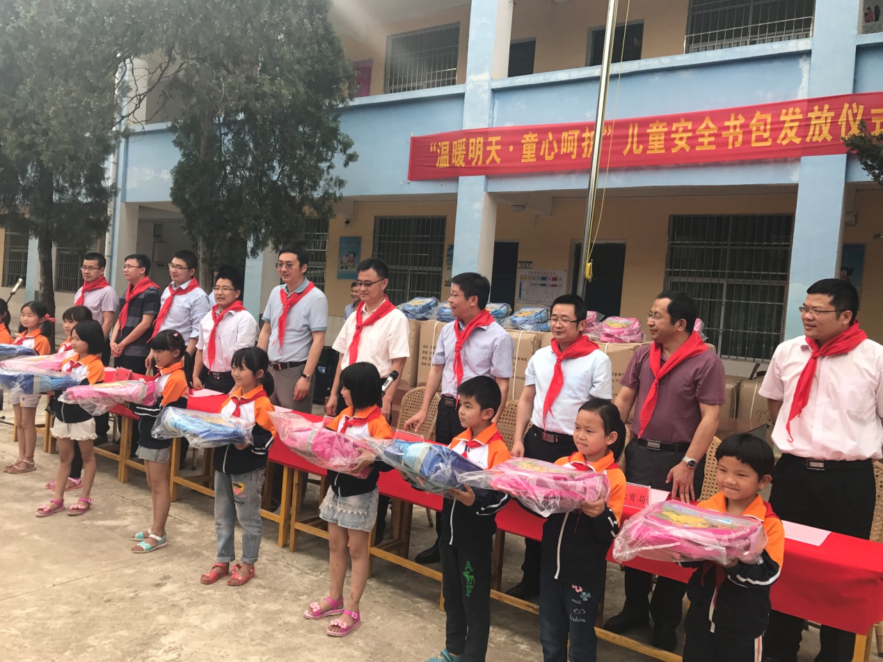 “溫暖明天·童心呵護(hù)”活動(dòng)現(xiàn)場(chǎng)向孩子們發(fā)放兒童安全書包