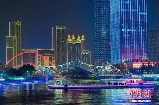8月17日晚,第十三屆全運會即將開幕,“點亮海河”活動在天津海河兩畔的進行了彩排、預(yù)演。 中新社記者 佟郁 攝