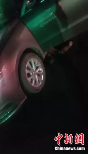 監(jiān)控畫面顯示:21日凌晨,發(fā)生一起小轎車與電動(dòng)自行車碰撞事故,電動(dòng)自行車駕駛?cè)吮粔涸谛∞I車底部,無(wú)法動(dòng)彈。