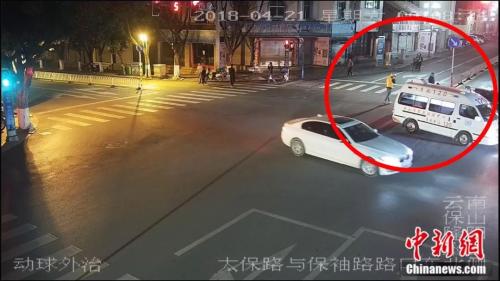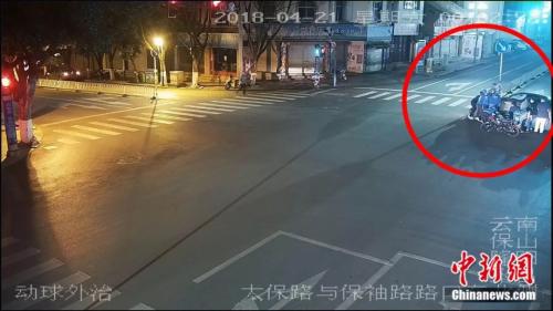 云南保山市交警支隊(duì)民警近日在調(diào)取一交通事故監(jiān)控時(shí)發(fā)現(xiàn)感人一幕。