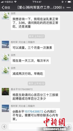 手術(shù)之后如何護(hù)理,什么時(shí)間復(fù)查,張先生的家人有問(wèn)題時(shí)都通過(guò)微信向楊利軍咨詢。張先生介紹,半年來(lái),他和楊醫(yī)生共有500多條微信互動(dòng),他也早已把楊利軍當(dāng)成朋友和家人。