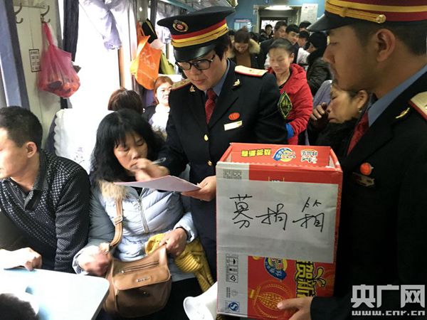 南京開往昆明的K155次列車上,列車長王華組織旅客募捐。