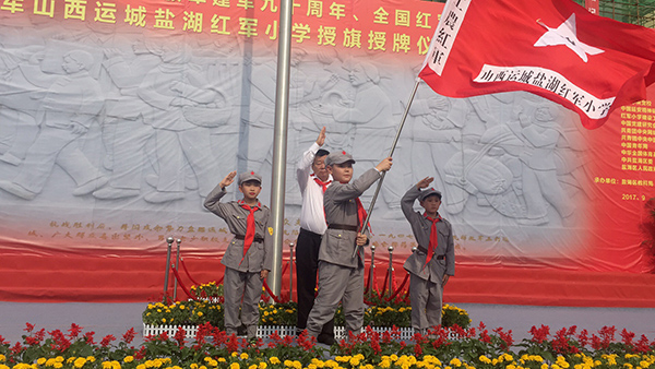 9月18日下午,中國(guó)工農(nóng)紅軍山西運(yùn)城鹽湖紅軍小學(xué)舉行授旗授牌感恩捐贈(zèng)儀式。鹽湖區(qū)十四小更名為“中國(guó)工農(nóng)紅軍山西運(yùn)城鹽湖紅軍小學(xué)”,正式加入全國(guó)紅軍小學(xué)隊(duì)伍,成為全國(guó)掛牌的231所紅軍小學(xué)之一。