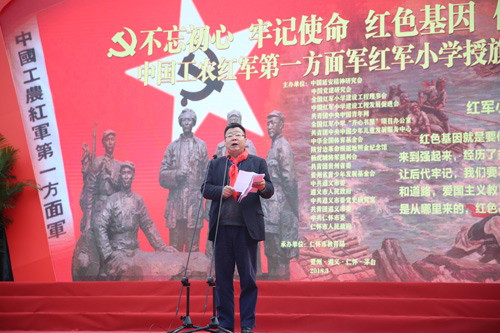 全國(guó)紅軍小學(xué)建設(shè)工程理事會(huì)副理事長(zhǎng)兼秘書長(zhǎng)方強(qiáng)宣讀學(xué)校成立的批復(fù)。