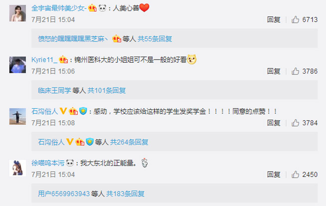 網(wǎng)友紛紛留言為丁慧點贊。網(wǎng)友“-城南舊夢”留言,女生人美心善,很溫暖。網(wǎng)友“ZCB張弛斌”留言,最美醫(yī)學(xué)生。(孟植良)