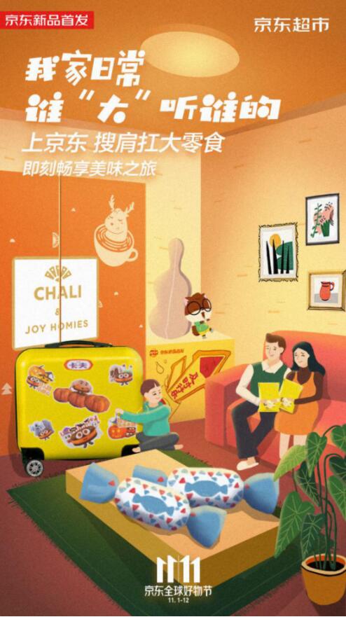 這些專為京東11.11定制的肩扛大零食禮包立刻以醒目又有趣,好吃又好玩的個(gè)性特點(diǎn),成為了線上傳播最有效的道具,不僅成功助力京東超市11.11的提前布局,也贏得了大量年輕人的青睞。