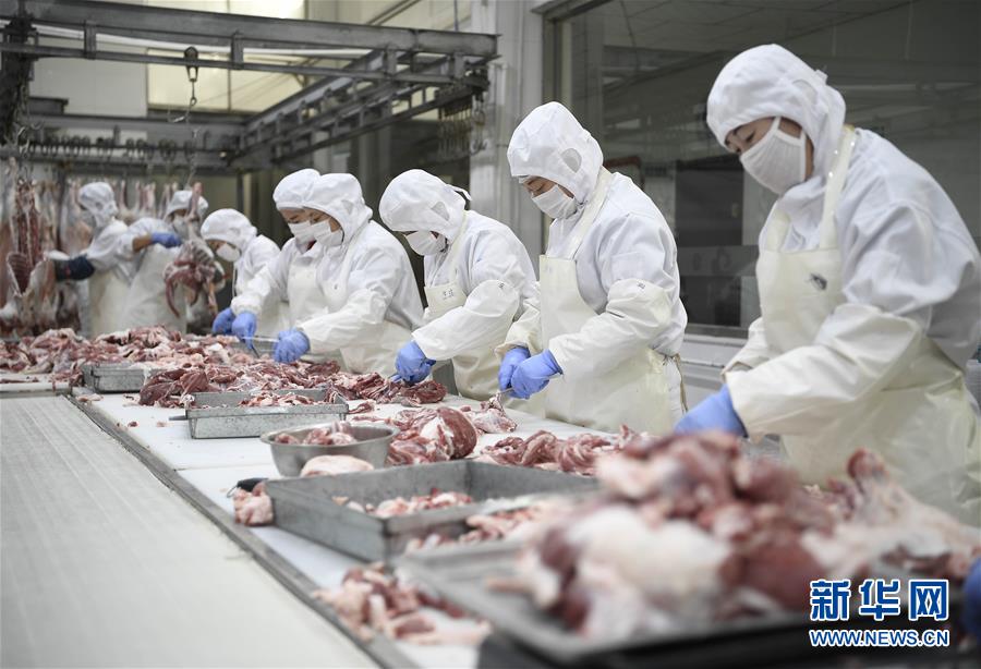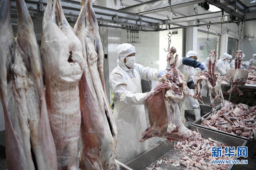 寧夏鹽池縣一家羊肉深加工企業(yè)的工人在分割羊肉(10月18日攝)。新華社記者王鵬攝