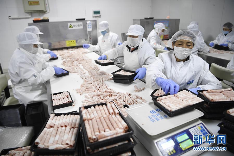 寧夏鹽池縣一家羊肉深加工企業(yè)的工人在包裝羊肉制品(10月18日攝)。 新華社記者王鵬攝