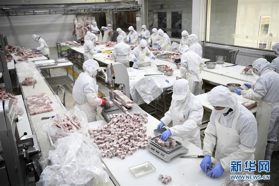 寧夏鹽池縣一家羊肉深加工企業(yè)的工人在分割羊肉(10月18日攝)。 新華社記者王鵬攝