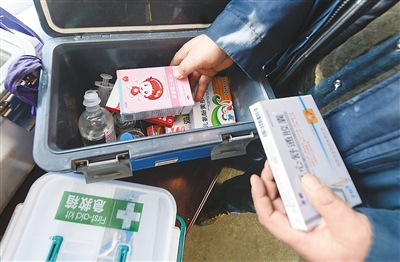 在昭蘇縣阿合牙孜溝牧業(yè)醫(yī)院,杰恩斯·阿里別克檢查巡診所需藥品。