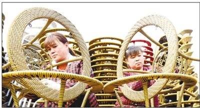 河北省邯鄲市肥鄉(xiāng)區(qū)東漳堡鄉(xiāng)雞澤屯村農(nóng)民在“微工廠”內(nèi)編制藤椅。胡清華攝(人民視覺)