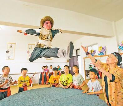 5月25日,江蘇海安市城東鎮(zhèn)西場(chǎng)小學(xué)的學(xué)生在練習(xí)京劇基本功。西場(chǎng)小學(xué)聘請(qǐng)南通市藝術(shù)劇院老師進(jìn)行專業(yè)輔導(dǎo),以“熟悉京劇、尊重藝術(shù)、傳承文化、提高修養(yǎng)”為目標(biāo),精心打造“和潤(rùn)京韻”特色課程。