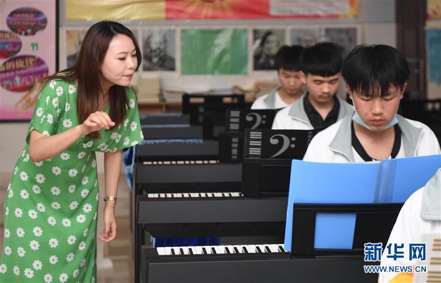 5月22日,瀘溪縣第五中學(xué)的老師(左)在給學(xué)生上鋼琴課。 瀘溪縣第五中學(xué)位于湖南省湘西土家族苗族自治州瀘溪縣武溪鎮(zhèn),是一所農(nóng)村普通完全中學(xué)。學(xué)校自2006年起免費(fèi)開(kāi)設(shè)各類(lèi)藝術(shù)培訓(xùn)課,培養(yǎng)農(nóng)村學(xué)生的藝術(shù)興趣、專(zhuān)業(yè)特長(zhǎng)。 新華社記者 薛宇舸 攝