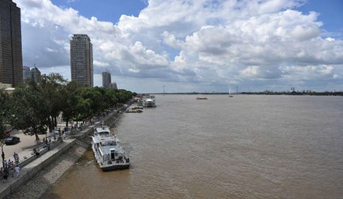 8月19日,松花江哈爾濱段突破了警戒水位達(dá)到118.13米,目前水位還在繼續(xù)上漲。江面比平時(shí)寬闊了很多,來(lái)往行駛的船舶明顯減少。中新社發(fā) 胡迪 攝