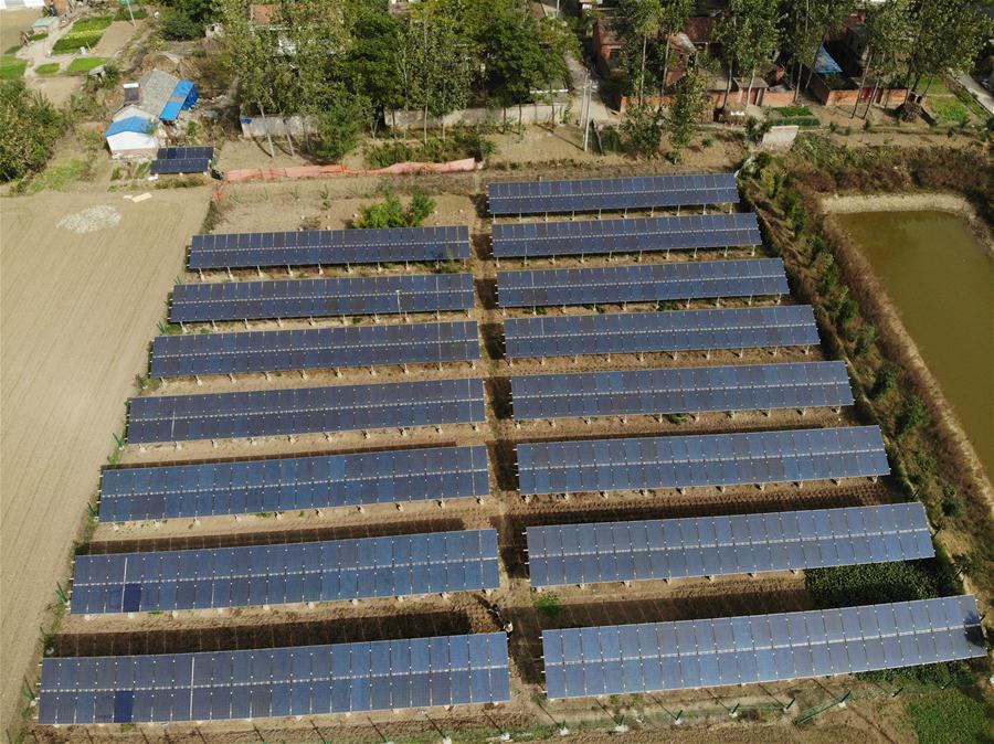 10月30日無(wú)人機(jī)拍攝的朱集村光伏電站。