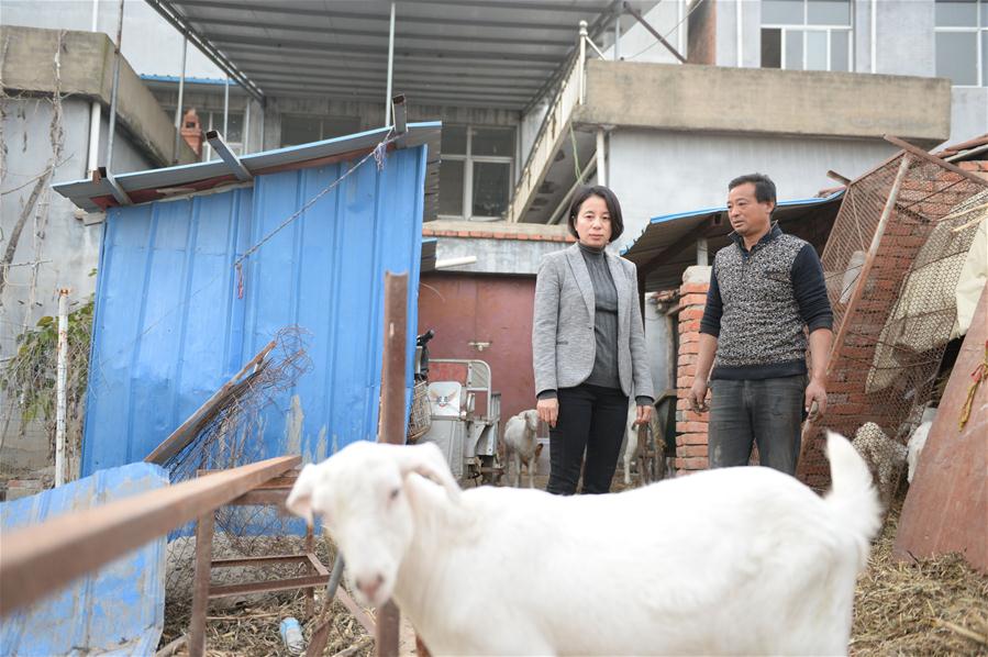 10月29日,劉雙燕(左)和養(yǎng)殖戶周亞軍交流羊的生長(zhǎng)情況。周亞軍從養(yǎng)殖一只“扶貧羊”開(kāi)始,經(jīng)過(guò)多次繁殖,發(fā)了“羊財(cái)”,最終成功脫貧。