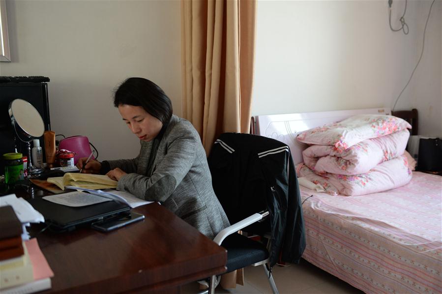 10月29日,劉雙燕在利辛縣汝集鎮(zhèn)朱集村的村部辦公室內(nèi)整理工作日志。她的辦公室同時(shí)也是她的宿舍,中間用一道窗簾隔開(kāi)。