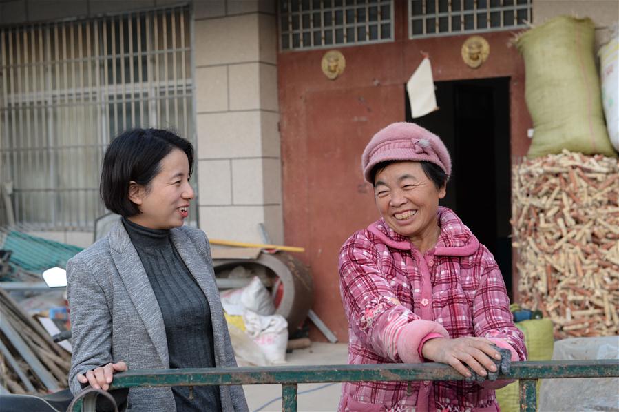 10月29日,劉雙燕(左)在利辛縣汝集鎮(zhèn)朱集村走訪時(shí)和村民交談。