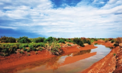 敦煌西湖國(guó)家級(jí)自然保護(hù)區(qū)內(nèi)的小河和濕地(6月22日攝)。新華社照片