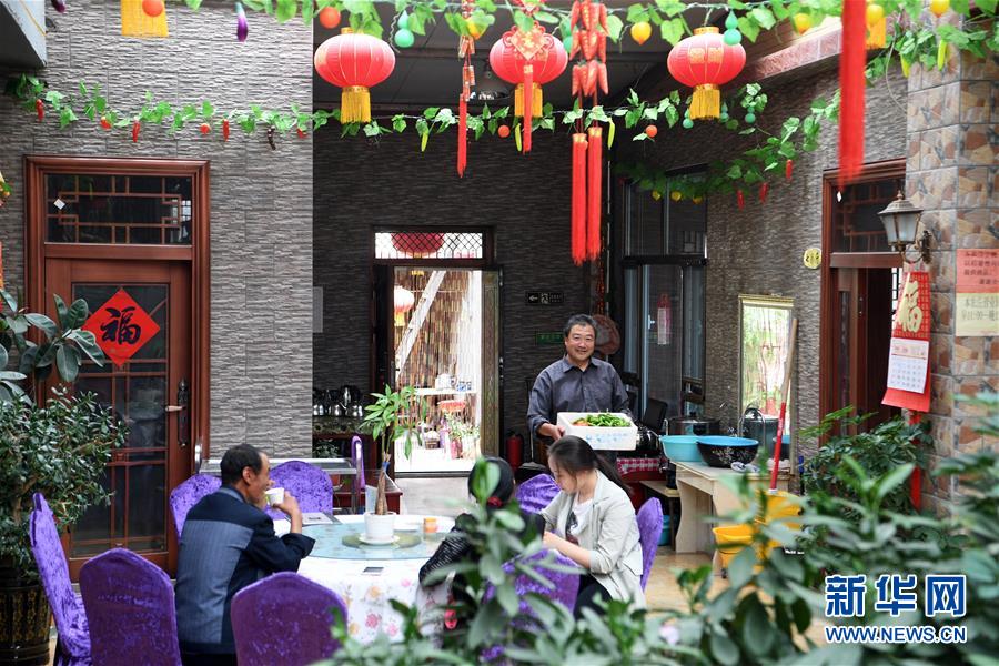 在張掖市肅南裕固族自治縣康樂鎮(zhèn)榆木莊村,村民張偉(右一)在自家開辦的農(nóng)家樂中忙碌(8月28日攝)。 今年以來,甘肅省出臺(tái)政策文件,全面提升鄉(xiāng)村旅游發(fā)展質(zhì)量和服務(wù)水平,推動(dòng)旅游業(yè)和經(jīng)濟(jì)社會(huì)發(fā)展。通過半年多的努力,部分市州鄉(xiāng)村基礎(chǔ)設(shè)施改善明顯,鄉(xiāng)村旅游發(fā)展迅速,吸引大批游客前來旅游,農(nóng)民收益增加,就業(yè)農(nóng)民增加。新華社記者 范培珅 攝 -