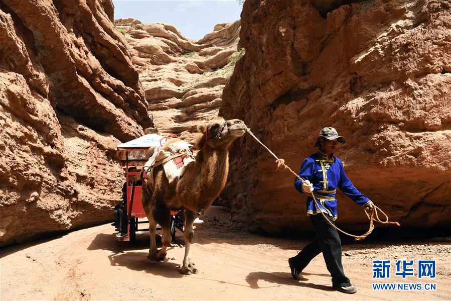在張掖平山湖景區(qū),當(dāng)?shù)啬撩裨诰皡^(qū)內(nèi)用駱駝板車?yán)慰陀斡[(8月27日攝)。 今年以來,甘肅省出臺(tái)政策文件,全面提升鄉(xiāng)村旅游發(fā)展質(zhì)量和服務(wù)水平,推動(dòng)旅游業(yè)和經(jīng)濟(jì)社會(huì)發(fā)展。通過半年多的努力,部分市州鄉(xiāng)村基礎(chǔ)設(shè)施改善明顯,鄉(xiāng)村旅游發(fā)展迅速,吸引大批游客前來旅游,農(nóng)民收益增加,就業(yè)農(nóng)民增加。新華社記者 范培珅 攝 -