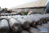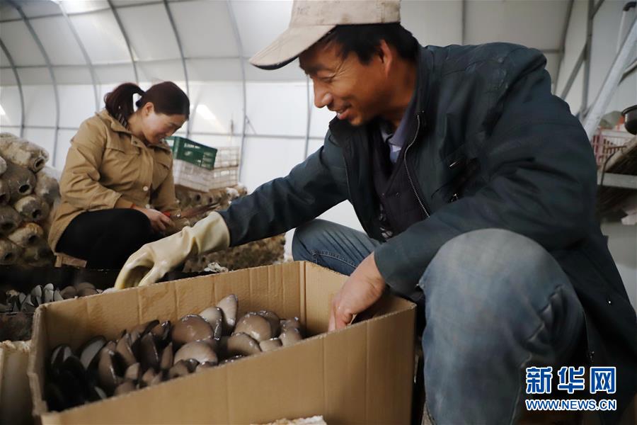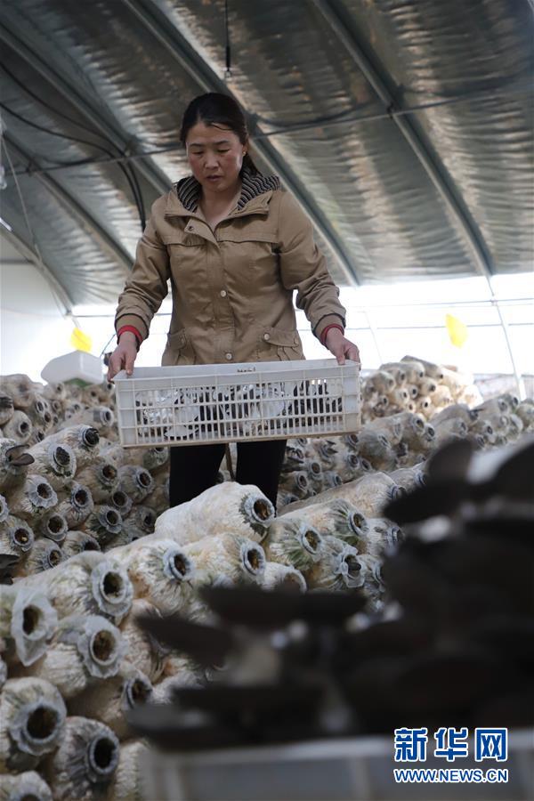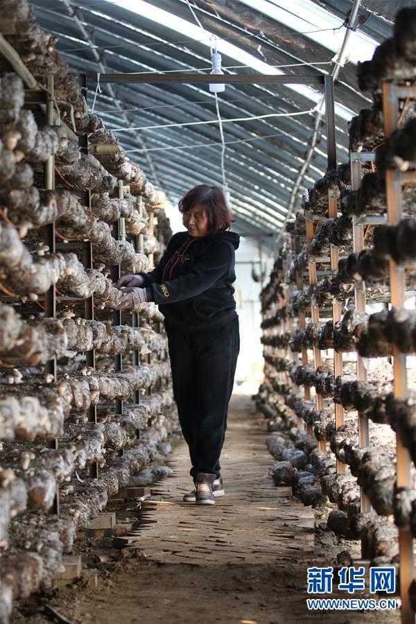10月16日,村民在平?jīng)鍪嗅轻紖^(qū)安國(guó)鎮(zhèn)土橋村的日光溫室蔬菜大棚里檢查香菇長(zhǎng)勢(shì)情況。新華社發(fā)(吳希會(huì) 攝) -