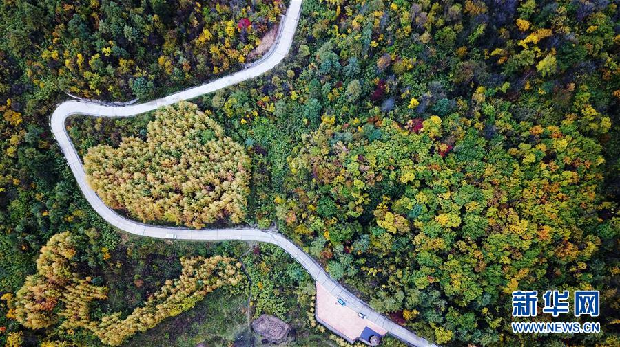 一輛汽車(chē)行駛在云屏三峽自然風(fēng)景區(qū)的道路上(10月18日無(wú)人機(jī)拍攝)。在秋意已濃的季節(jié),有著“天然氧吧”之稱(chēng)的甘肅省隴南市兩當(dāng)縣云屏三峽自然風(fēng)景區(qū)層林盡染,景色絢麗,多彩秋景讓人仿佛置身童話世界。新華社記者陳斌 攝