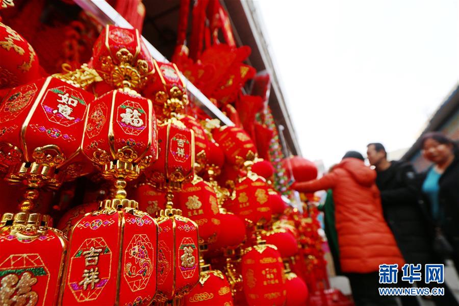 1月30日,市民在甘肅省平?jīng)鍪嗅轻紖^(qū)一商品批發(fā)市場(chǎng)挑選新年飾品。春節(jié)臨近,各地洋溢著喜慶的氣氛。新華社發(fā)(吳希會(huì) 攝)