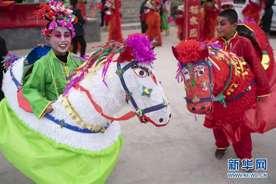 •      2月19日,在甘肅省隴南市武都區(qū)馬街鎮(zhèn)寺背村,社火隊(duì)演員參加巡游表演。新華社記者才揚(yáng) 攝