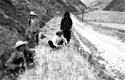 1996年,隴南市宕昌縣車拉鄉(xiāng)農(nóng)民在全鄉(xiāng)唯一的對外通道——僅能容納一輛汽車通過的土路旁勞作。新華社圖片