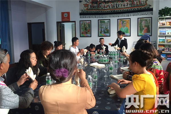 2015年11月6日,云南省昆明市盤龍區(qū)金星社區(qū)服務(wù)中心,志愿者在對社區(qū)內(nèi)的少數(shù)民族居民進行餐廳工作上崗培訓(xùn)。
