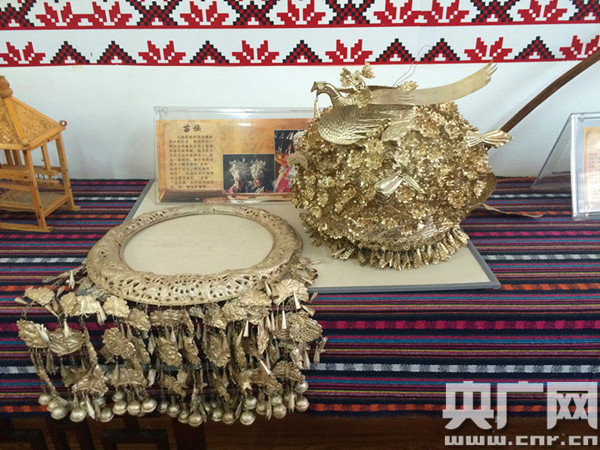 云南省昆明市盤龍區(qū)金星社區(qū)服務(wù)中心展示的少數(shù)民族苗族配飾。