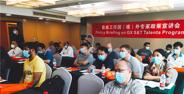 央廣網(wǎng)南寧6月28日消息(記者羅蘭)6月26日,廣西壯族自治區(qū)科學(xué)技術(shù)廳(以下簡稱“廣西科技廳”)在南寧召開在桂工作國(境)外專家政策宣講會(huì),來自美國、澳大利亞、新加坡,中國香港、中國臺(tái)灣等14個(gè)國家和地區(qū)的在桂國(境)外專家和用人單位業(yè)務(wù)負(fù)責(zé)人50余人參加會(huì)議。