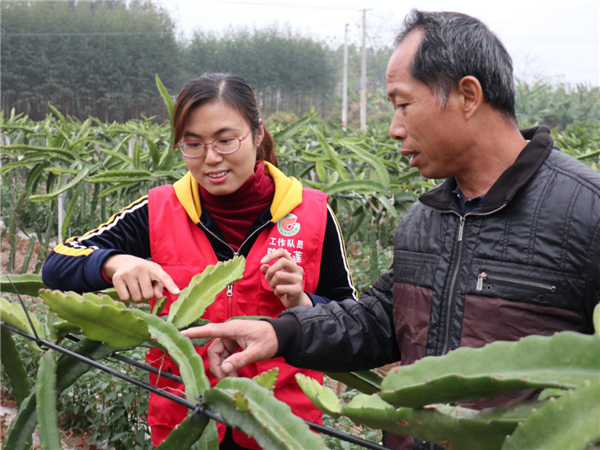 發(fā)現(xiàn)了問題就要解決。陳金蓮與村內(nèi)干部積極溝通、考察研究后,建議和引導(dǎo)村民改種果樹類作物。同時,陳金蓮以“公司+農(nóng)戶”的合作方式發(fā)展養(yǎng)殖業(yè),讓村民加入養(yǎng)殖公司或者合作社,“雞苗配發(fā)—養(yǎng)殖—回收”一系列流程化,形成產(chǎn)業(yè)。此外,貫徹“精準(zhǔn)幫扶,因戶施策”的理念,陳金蓮采用教育幫扶、低保政策兜底等多種方式,保障村民生活,提供切實地服務(wù)與幫助。