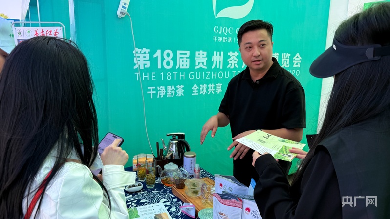 茶商現(xiàn)場(chǎng)推介自己的茶產(chǎn)品(央廣網(wǎng)發(fā) 陳思琪 攝)