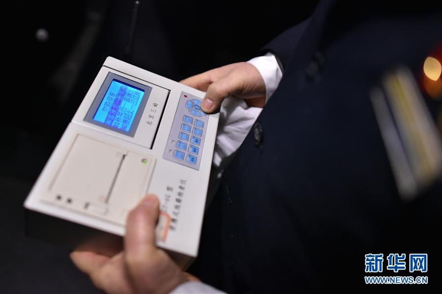 2月1日,DJ8841動(dòng)車組駕駛員在登記陳輝(右)的證件信息。新華社記者 歐東衢 攝 -