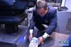 2月1日,陳輝在DJ8841次動(dòng)車組駕駛艙內(nèi)安裝便攜式線路檢查儀。新華社記者 歐東衢 攝